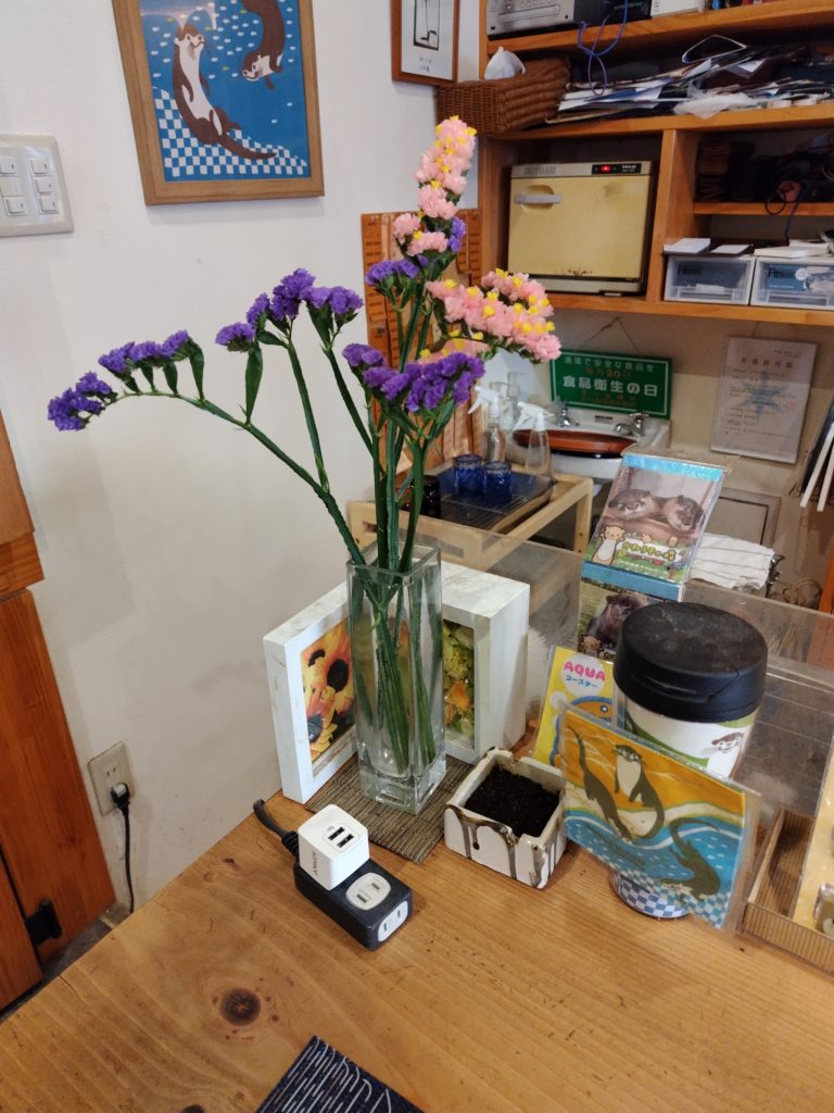 カウンターの花は自分で買ってきました。
